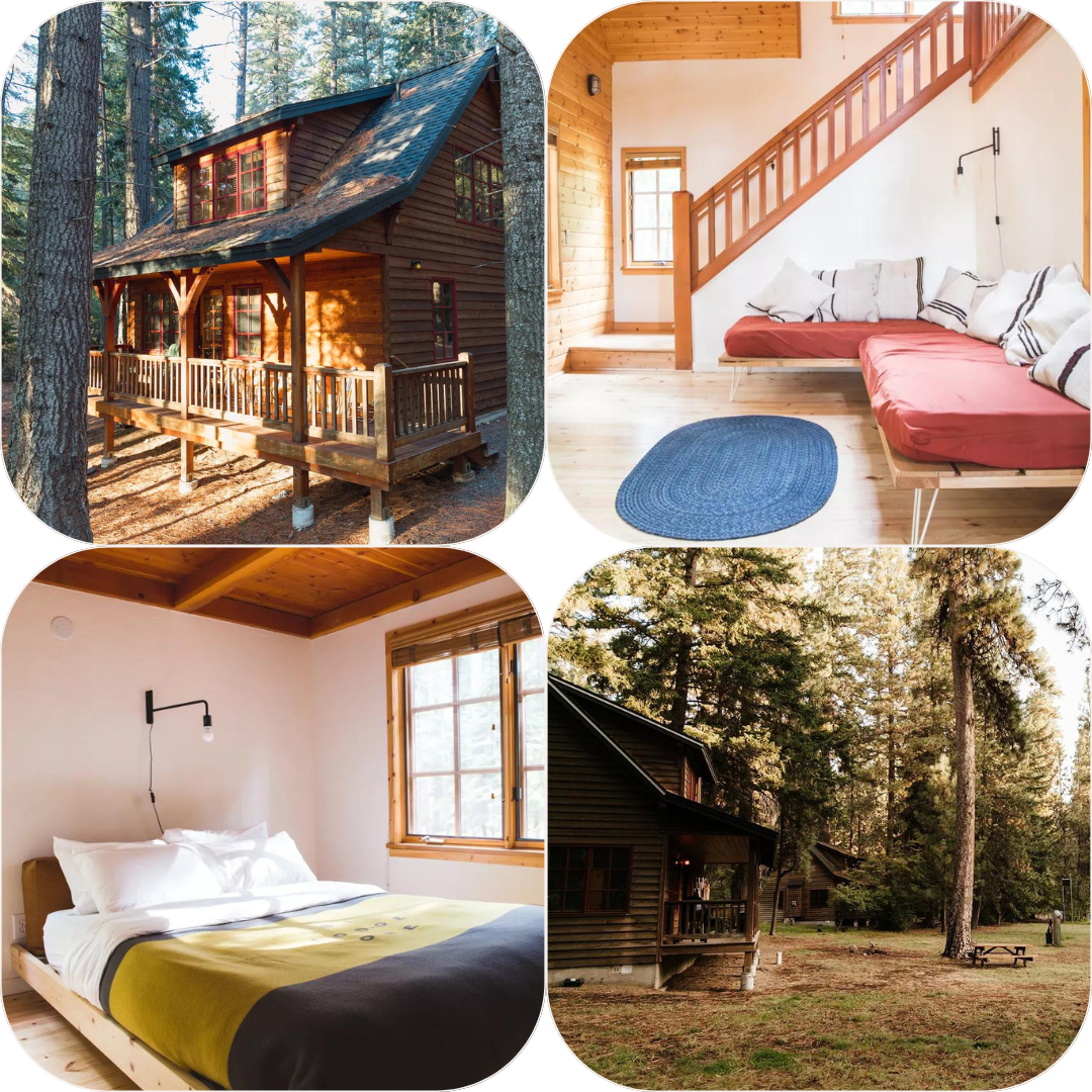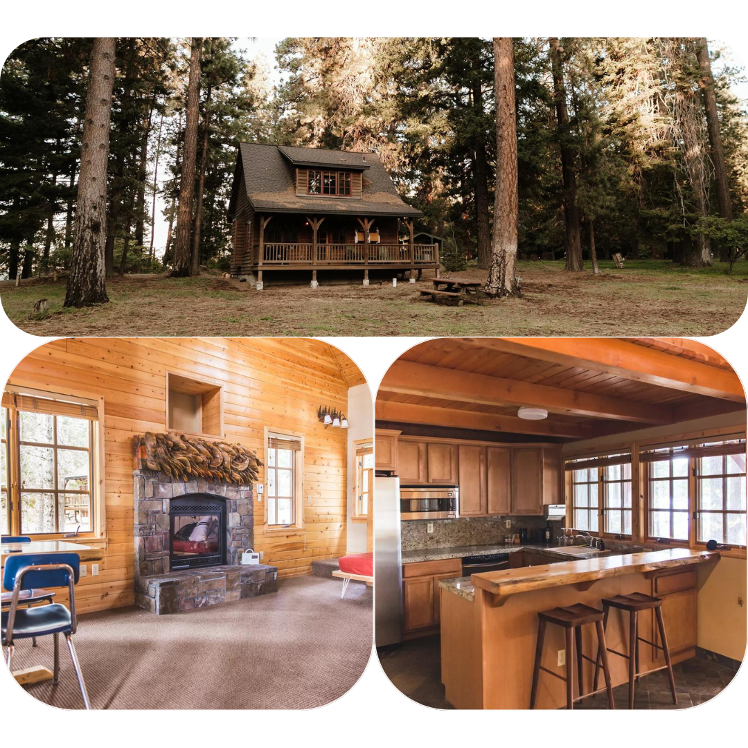 A completely private cabin all to yourself, with a kitchen, fireplace, living room, and one bedroom with one shared king bed.