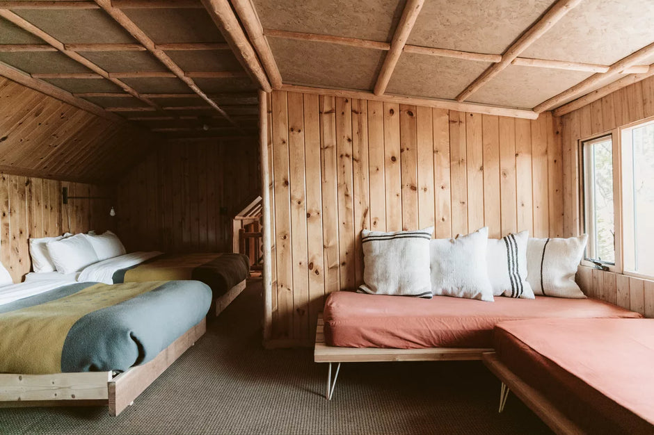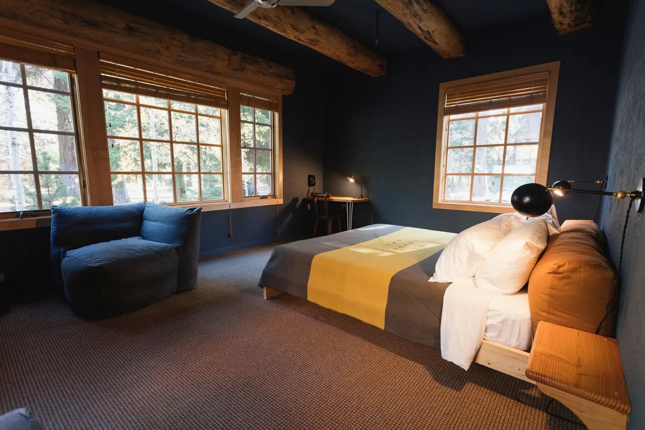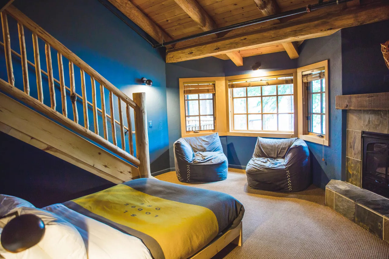 Rooms are inside the main lodge, with a king or queen bed on the lower level and a lofted area with one queen bed and/or two twin beds depending on the accommodation.
